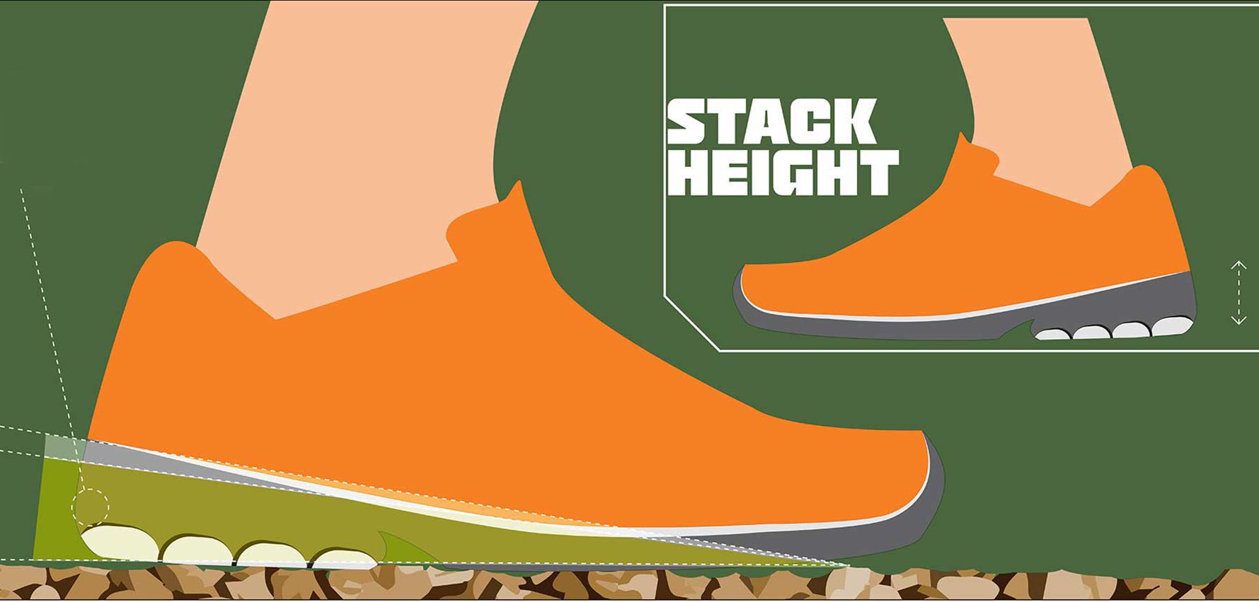 Độ dày của đế ảnh hưởng đến tính ổn định trong quá trình sử dụng. Một số người thường bị trẹo hay lật cổ chân nếu giày có đế quá cao. Thông số độ dày đế khi chọn giày thể thao được gọi là “stack height” và thường được thể hiện trong phần mô tả.