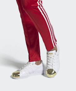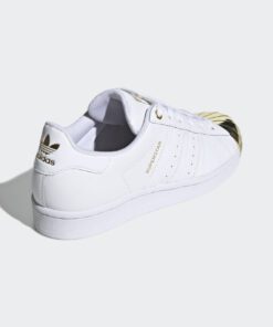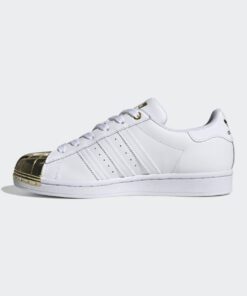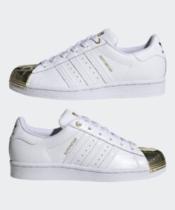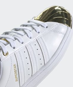 B-ball anh hùng. Biểu tượng hip hop. Người chơi sức mạnh văn hóa. Vẫn tiếp tục phát triển mạnh mẽ sau năm mươi năm, adidas Superstar trainer xứng đáng nhận được vàng. Đôi giày này có phần mũi bằng kim loại màu vàng cho kiểu dáng 24 karat. Mặt trên bằng da mịn được tạo điểm nhấn bằng da sáng bóng và các chi tiết kim loại để tăng độ sáng bóng.