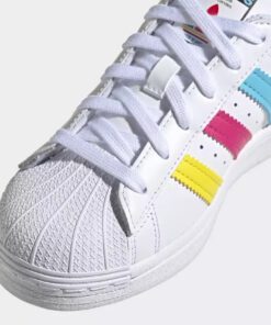 Thiết kế ban đầu dành cho sân bóng rổ vào thập niên 70. Được các ngôi sao hip hop tôn sùng vào thập niên 80. Đôi giày adidas Superstar giờ đây đã trở thành biểu tượng của các tín đồ thời trang đường phố. Thiết kế mũi giày vỏ sò nổi tiếng thế giới mang đến phong cách chất lừ và khả năng bảo vệ. Giống như những gì đôi giày này đã thể hiện trên sân bóng rổ trong quá khứ. Giờ đây, bạn có thể tự tin tham gia lễ hội âm nhạc hay dạo phố mà không sợ bị dẫm lên chân. Chi tiết 3 Sọc viền răng cưa và logo adidas Superstar đóng khung mang đậm phong cách nguyên bản chính hiệu.